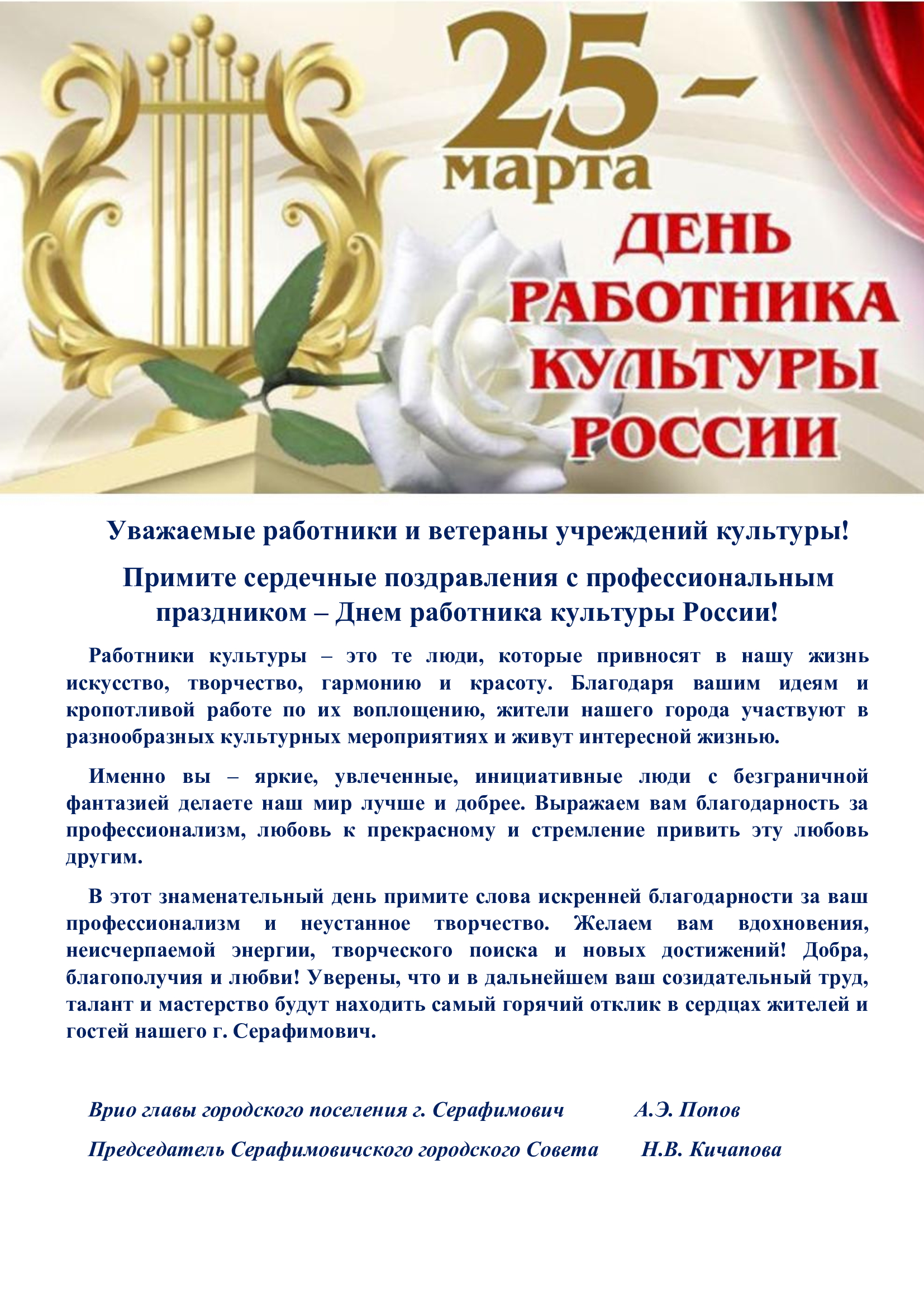 Уважаемые работники и ветераны учреждений культуры!